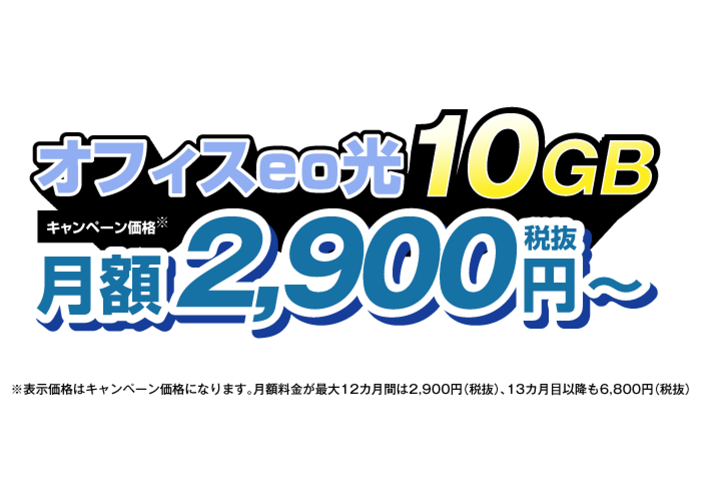 キャンペーン期間中に指定のプラン(注1)に加入していただくと、月額料金が最大12ヶ月2,900円(税抜)、13ヶ月以降も6,800円(税抜)になります。